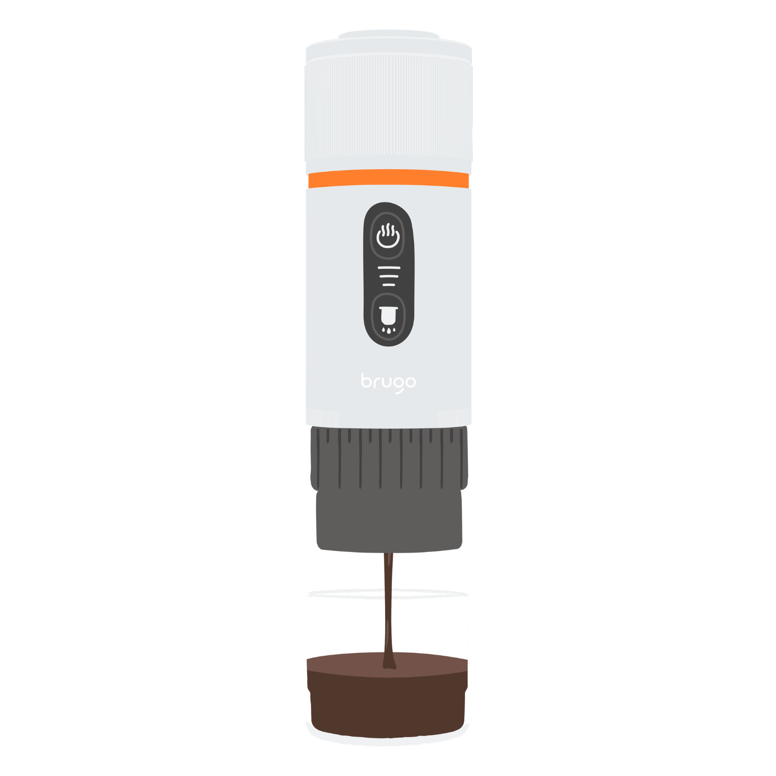 Press start. Brugo automatically heats water and extracts your espresso into the included cup.